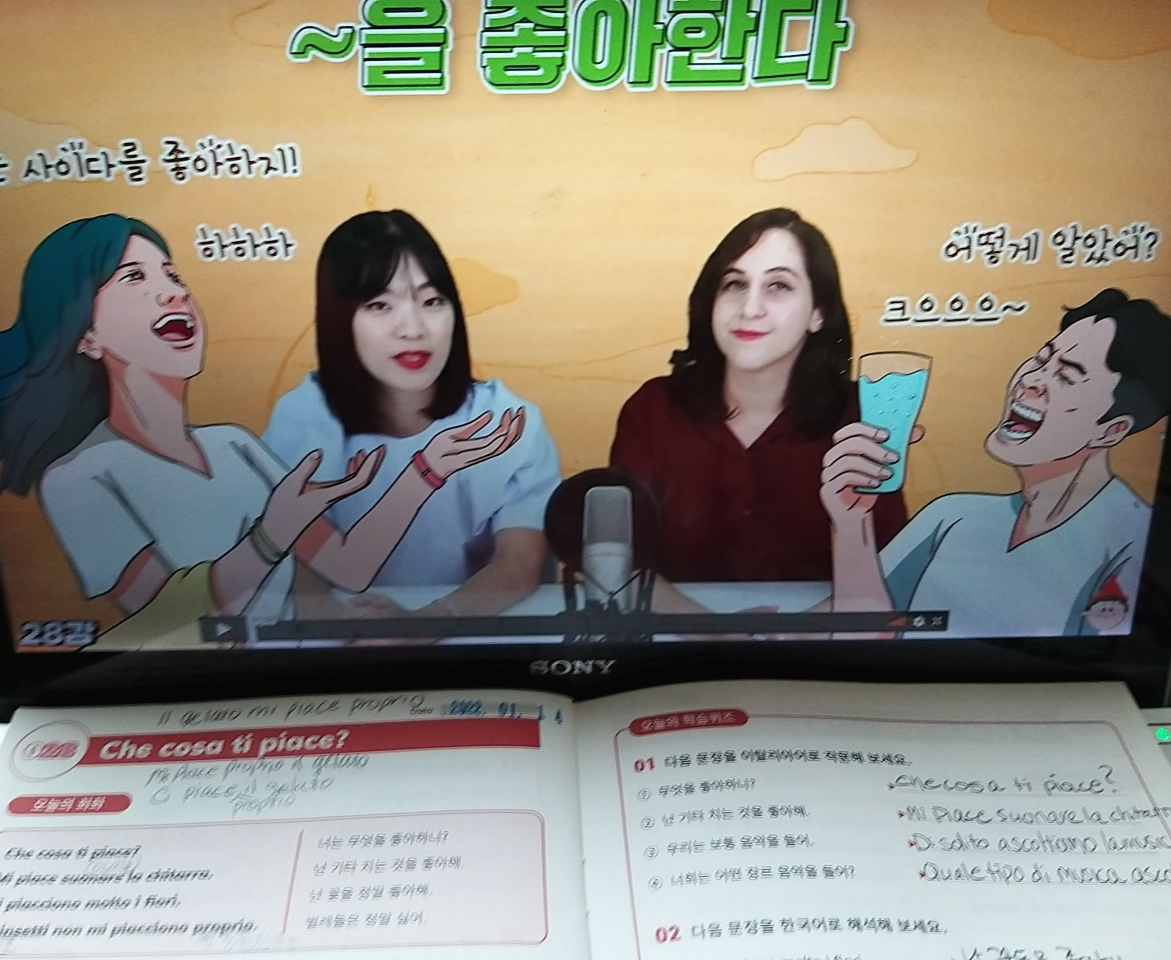 Mi piace guardare la TV, YouTube et Netflix. 나 티비, 유튜브채널과 넷플릭스 보는 거 쪼아!