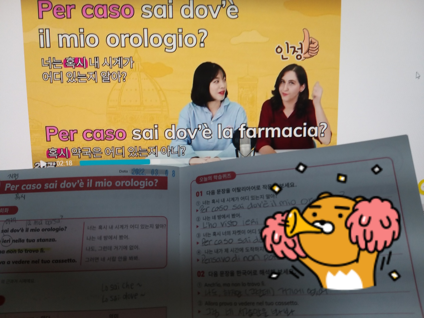 이유2 - 인강이 마음에 들었다. 딱딱한 느낌의 인강이 아닌, 대화하듯 재미있게 꾸며진 알찬 인강이었기에 짧은 시간이지만 같이 웃으면서 재미있게 공부한게 아마도 이탈리아어를 할 수 있었다. 하지만... 이제 초급 끝냈는데... 중급이 없더라...